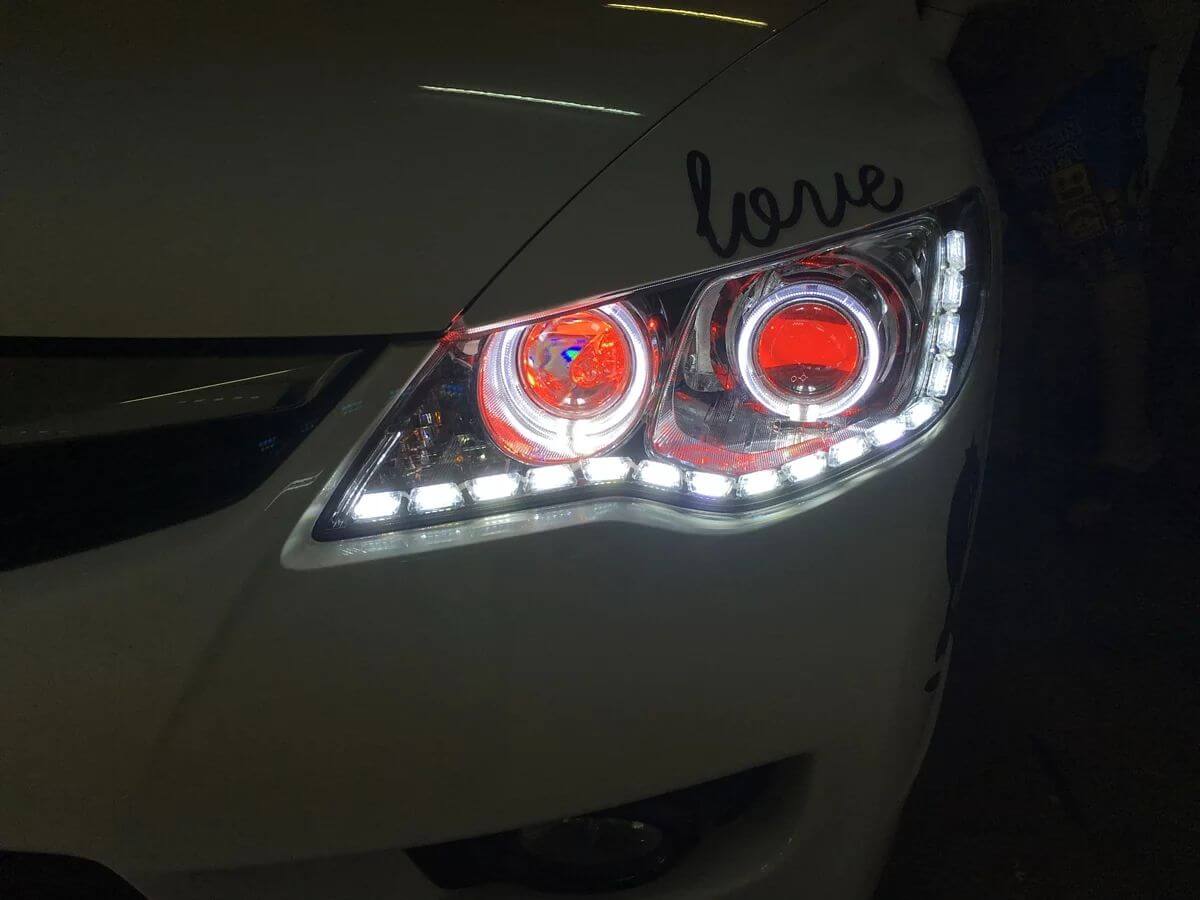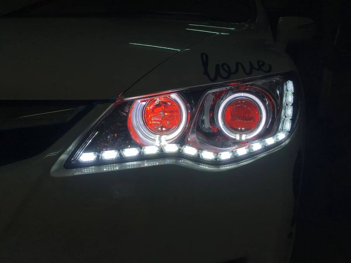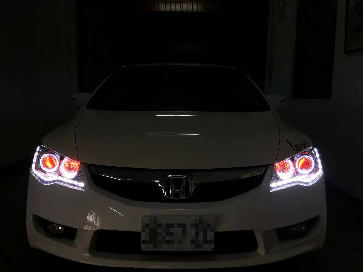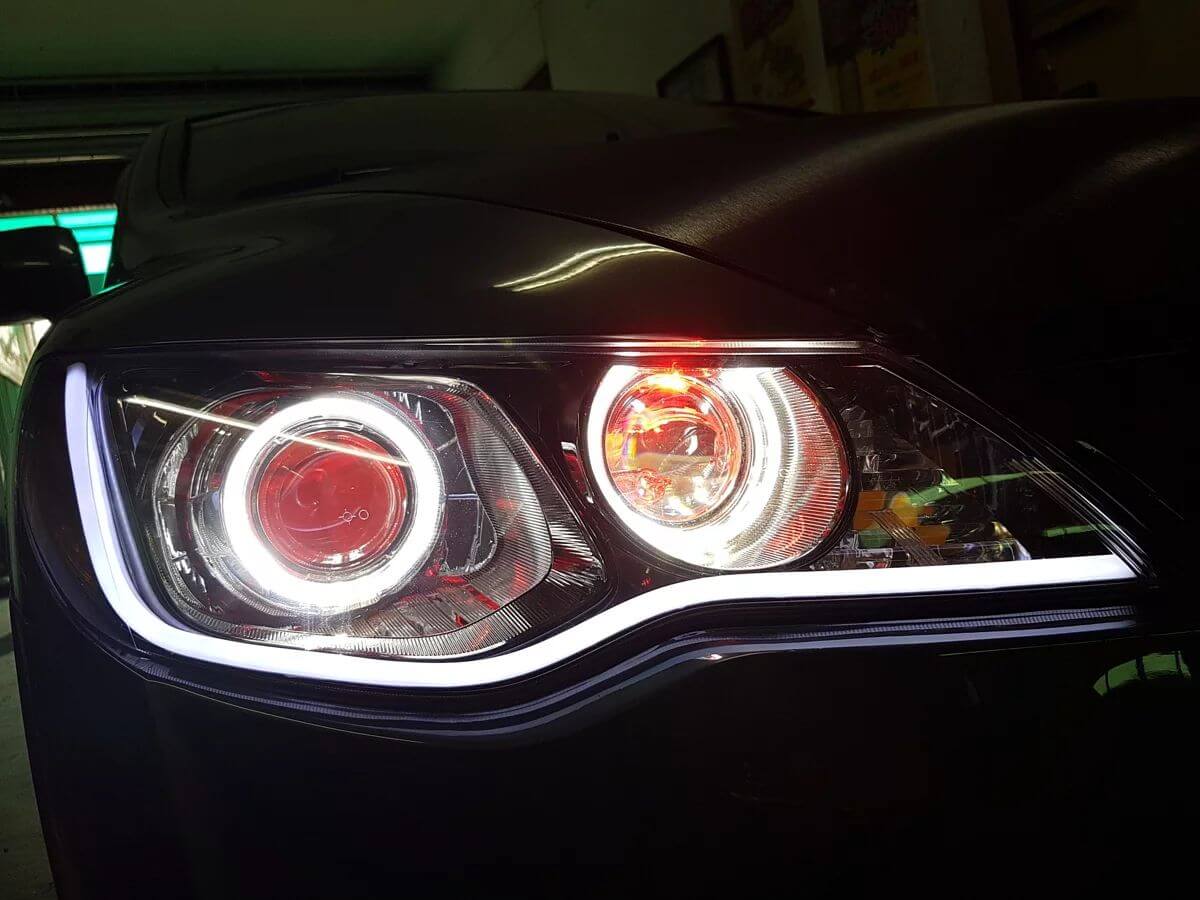 遠近燈升級WS系列魚眼 + 遠近燈歐司朗LED紅色惡魔眼 + 遠近燈歐司朗LED白色外光圈 + LED淚眼燈條